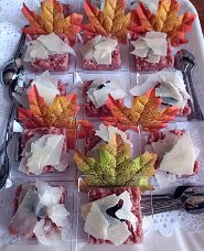 Albese di manzo con parmigiano Albese mignon con uovo di quaglia e tartufo Albesi con tartufo e Parmigiano arancini con caponatina Arancini con caponatina 2 Arancini siciliani Arancini Arrosto in salsa tonnata (2) Arrosto in salsa tonnata Aspic di verdure Aspic di verdurine Babbà salati Babà salato ripieno di 'nduja e broccoletto brasato al marsala Barchetta con gamberi in salsa cocktail (2) Barchetta con Gamberi in salsa cocktail Barchetta con russa e gabero Barchetta di russa e gaamberetti Barchetta fave salame e pecorino Barchette con prosciutto e melone Bavarese al salmone su biscottino di frolla salata Ambienti